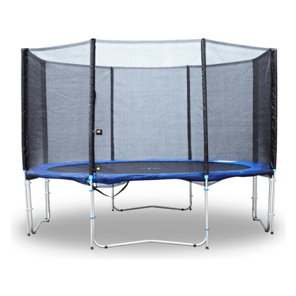 Nejpoužívanější model českých zahrad. Snadno se sestaví i složí, včetně ochranné sítě. Síťovina je dostatečně vysoká i pro velké skoky, musíte ale dát pozor, aby jste se za lem příliš nevěšeli. Nemá totiž zpevněný lem a mohla by se poškodit. Díky čtyřem symetrickým dvojitým nohám je velmi stabilní.